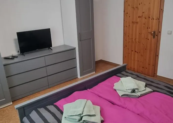 This apartment has a fully equipped kitchen and all the necessary items, including an electric kettle, a refrigerator, and an oven, can be found there. The nearest Ortsmitte bus stop is just a short drive from the property. Thanks to luxuries such as a sundeck and barbecue, the ultimate relaxation is provided.